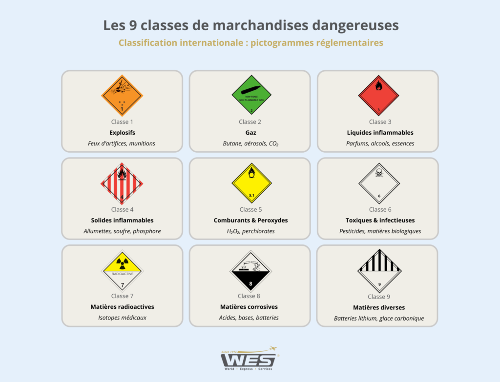 • Classe 9 : Matières diverses (batteries lithium, glace carbonique)